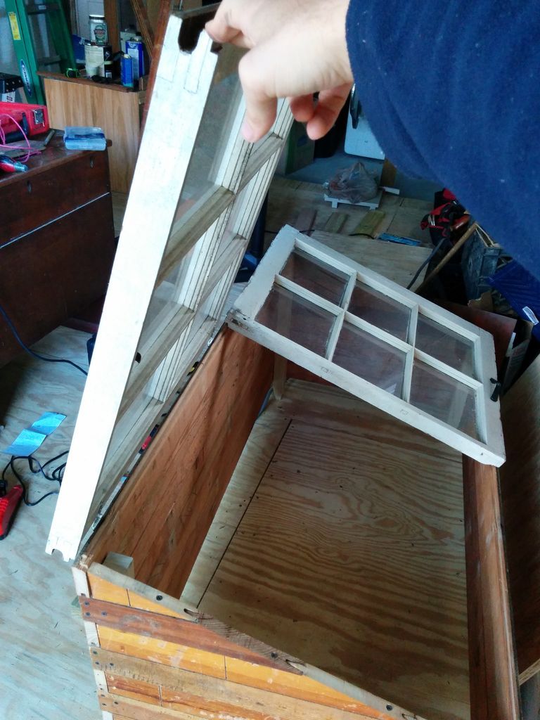 Δεν συνιστάται η χρήση κουφωμάτων παραθύρων ως στέγη. Ενδέχεται να μην αντέξουν το βάρος του χιονιού τον χειμώνα. Καλύτερα είναι τα πολυανθρακικά ή οι σανίδες.