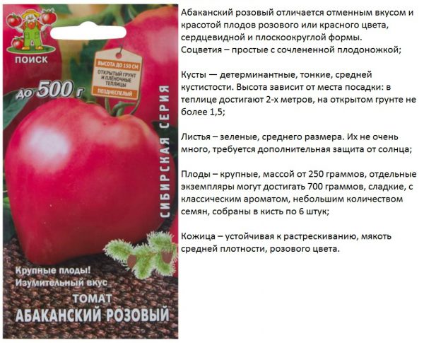 Ένας πίνακας με χαρακτηριστικά των ποικιλιών ντομάτας Abakansky Pink και Abakansky από το Top.tomathouse.com