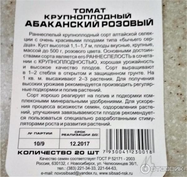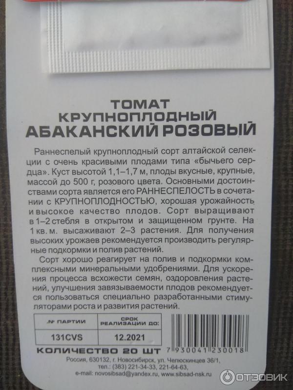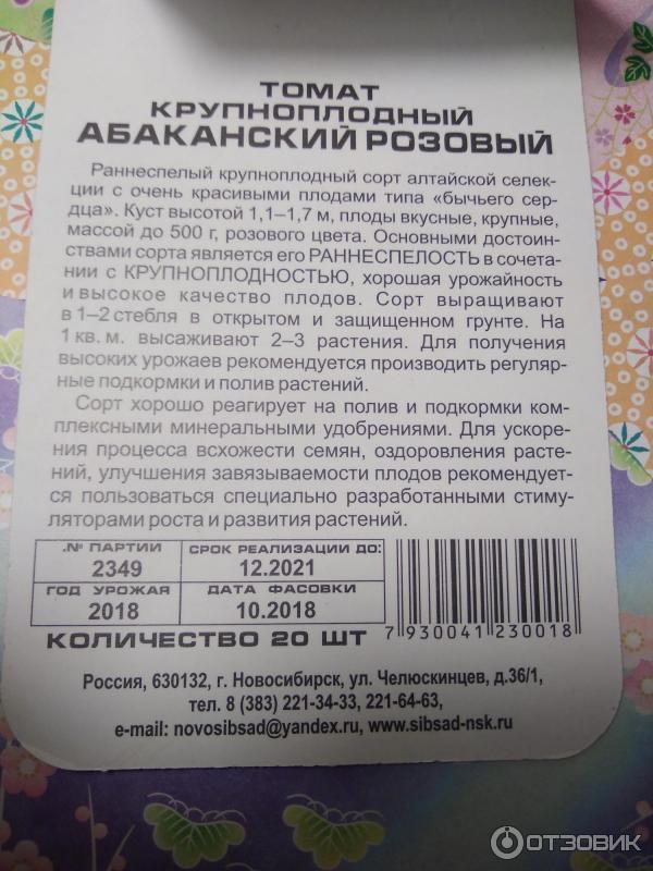 Έχω αγοράσει σπόρους ντομάτας "Abakansky Pink" από την μάρκα "Sibirsky Sad" αρκετές φορές και ποτέ δεν με έχουν απογοητεύσει.