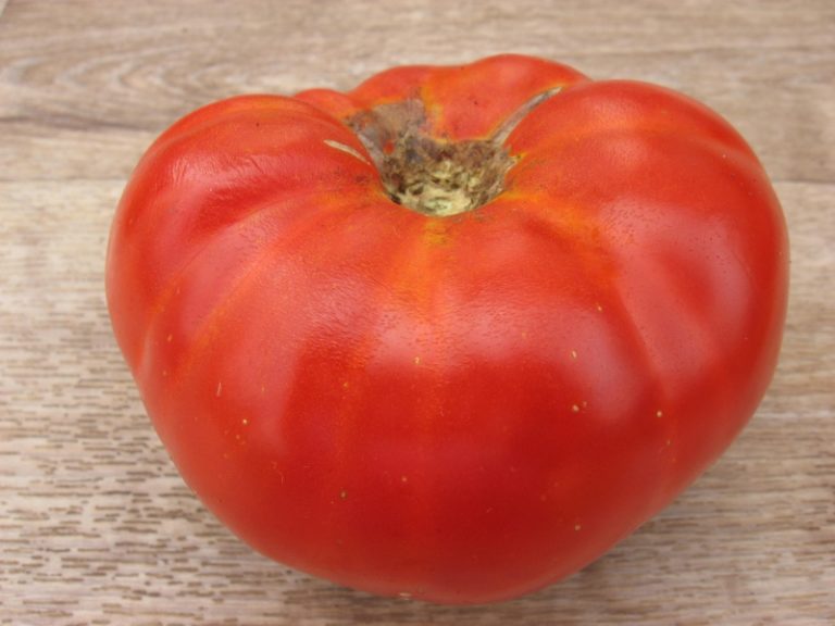 Μια απροσδιόριστη ποικιλία μέσης σεζόν για ανοιχτό έδαφος και θερμοκήπια. Απαιτεί πασσάλους και διαμόρφωση. Κατάλληλο για σαλάτες. | Επίπεδο-στρογγυλό, μεσαίου μεγέθους ραβδώσεις, μέτριας πυκνότητας, κόκκινο, 300-400 γρ. Καλή γεύση. |