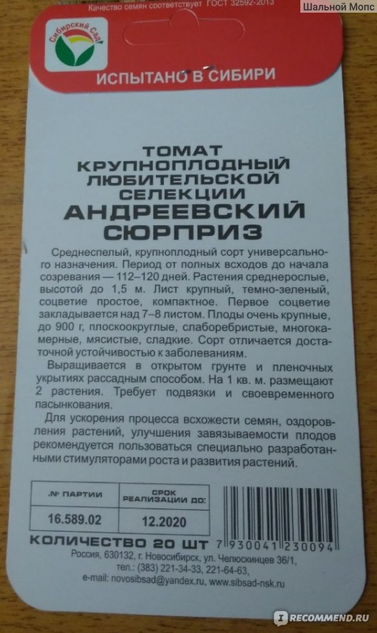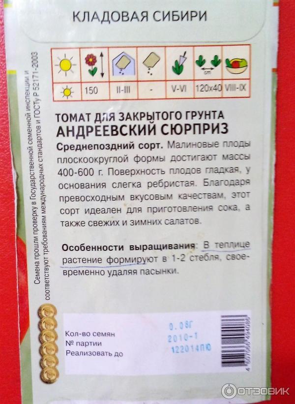 Καταρχάς, είναι σημαντικό ότι δημιουργήθηκε από Σιβηρικούς καλλιεργητές. Έχω αγοράσει σιβηρικούς σπόρους πολλές φορές και δεν το μετάνιωσα ποτέ.Δεύτερον, το Andreevsky Surprise είναι κατάλληλο για καλλιέργεια σε περιοχές με επικίνδυνη γεωργία, η οποία περιλαμβάνει την κεντρική Ρωσία.