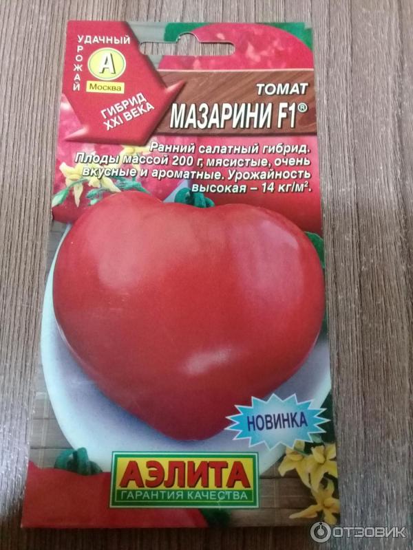 Αυτή ήταν η πρώτη φορά που αγόρασα σπόρους ντομάτας "Mazarini F1" από την Aelita αυτή την εποχή. Η συσκευασία απεικονίζει μια μεγάλη ντομάτα σε σχήμα καρδιάς, ιδανική για σαλάτες.