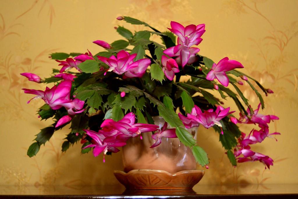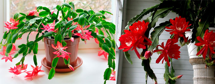 - ШлумбергераПрез декември дългите, съчленени издънки образуват ярки, красиви цветове в краищата си. Оттук цветето получава популярното си име „декабрист“. След цъфтежа издънките могат да се подрязват. Лесно се пресажда.