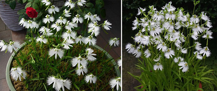 Тази орхидея е по-топлолюбива, предпочита температури от 22 до 30°C и е непоносима към студ. Цветовете ѝ са много красиви и бели, но са без аромат. Цъфтежът е продължителен и може да продължи през цялата година с подходящи грижи. Поради влаголюбивия си характер обаче се препоръчва редовно оросяване и поливане.
