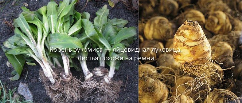 Както всяко растение, еукомисът има основа. Това е голяма луковица с лъскава повърхност, наподобяваща яйце на външен вид. Тази основа позволява развитието на силна коренова система, осигуряваща стабилност на цялото растение.