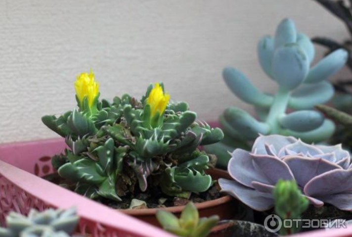 Растението е напълно непретенциозно; може да се полива веднъж на всеки 2-3 седмици (но не забравяйте да източите напълно саксията). То образува красиви какавиди, нови розетки, и цъфти през есента с жълти цветове, напомнящи на маргаритки.