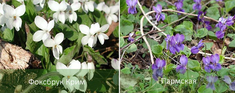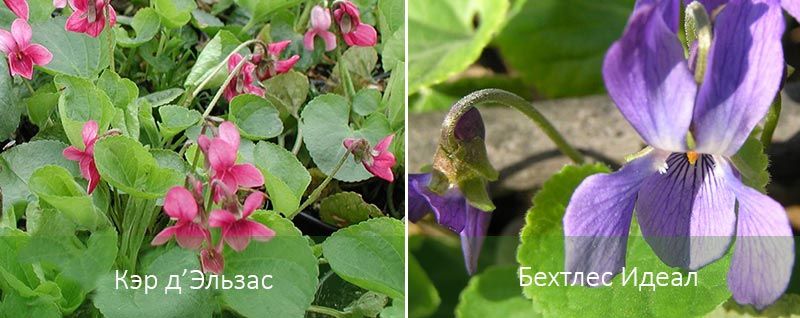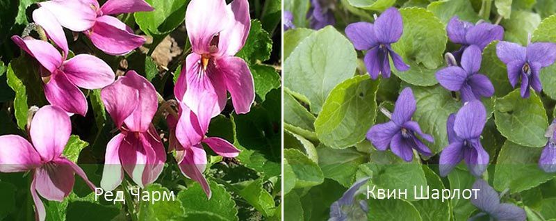 | Кралица Шарлот | Растението достига до 20 см височина. Листата са заоблени и с форма на розетка. Може да измръзне през зими с малко сняг, така че изисква допълнително подслон. Цъфти през май и юни. | Лилаво, ароматно, подобно на пеперуда. |