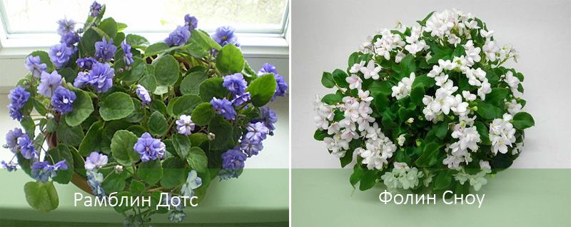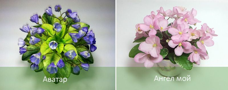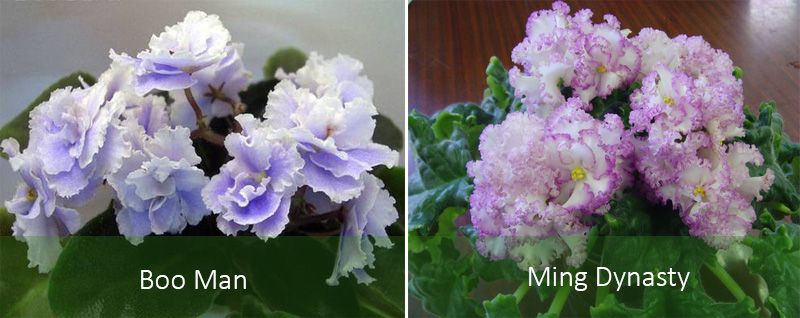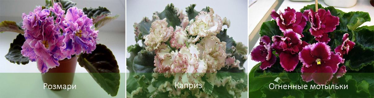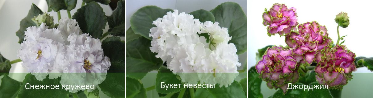 - Колекционерски сортове с обемни цветове. Почти всички са махрови, с плисета. Листата и съцветията се предлагат в най-различни цветове. Тези сенполии се излагат и събират от колекционери.