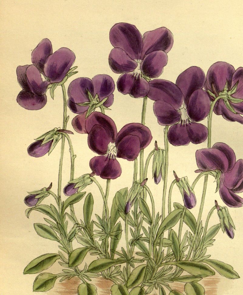 Многогодишно растение с възходящи издънки. Съцветия до 4 см, синьо-лилави или жълтеникави. Изключение прави сортът Лорд Нелсън, който е тъмноаметистов, почти черен. Цъфти от пролетта до слана.