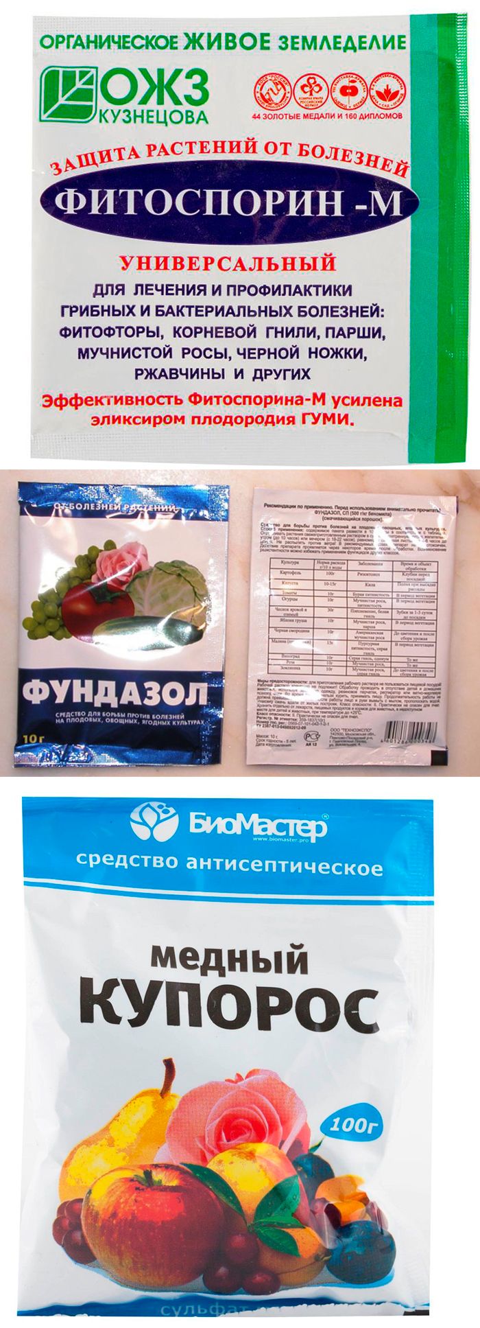 Повечето от тях са биофунгициди, безопасни за здравето. Популярни сред тях са Фитоспорин, Фундазол и подобни продукти с различни свойства.