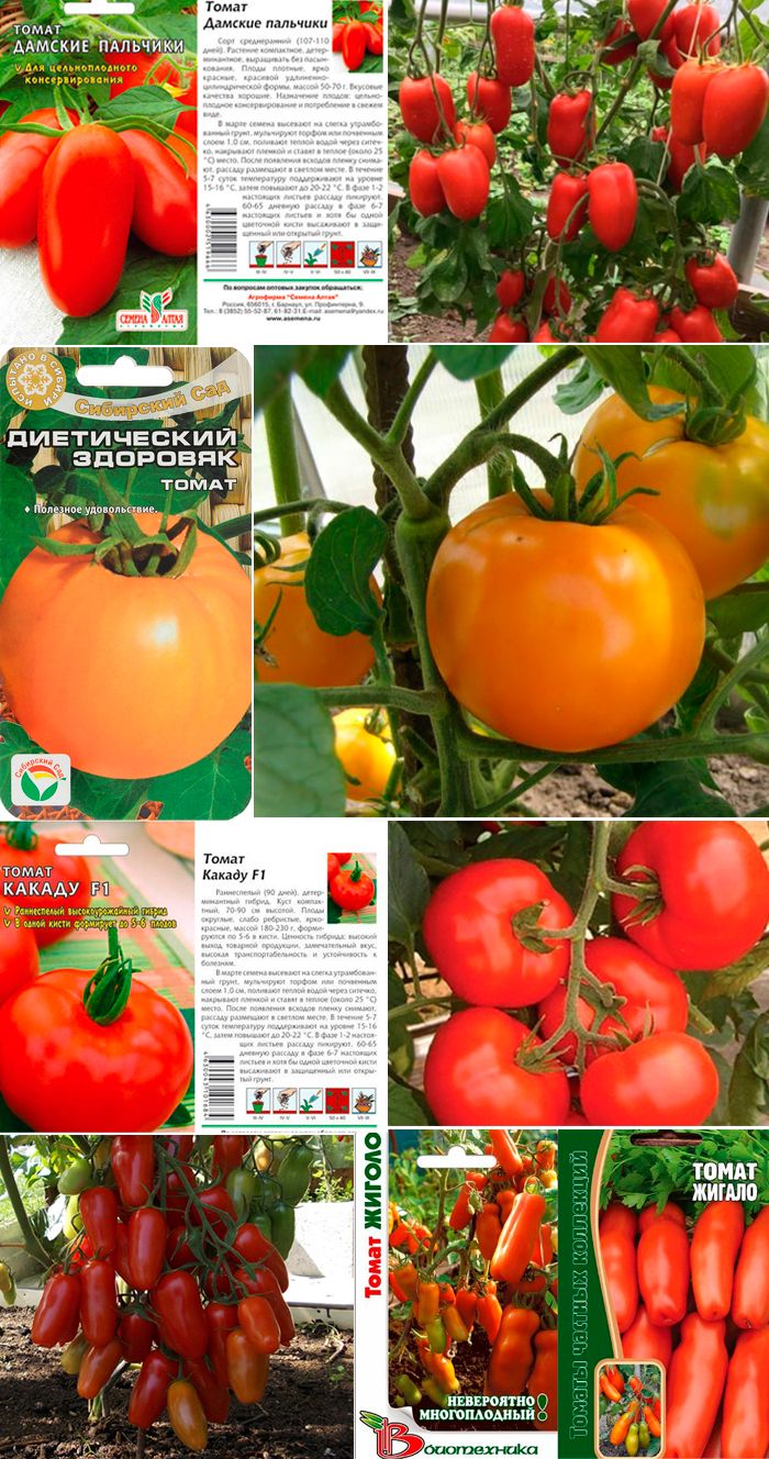 - Дамски пръсти. Много популярен сорт. Доматите приличат на горски плодове. Храстът е нискорастящ. Счита се за лесен за отглеждане сорт.