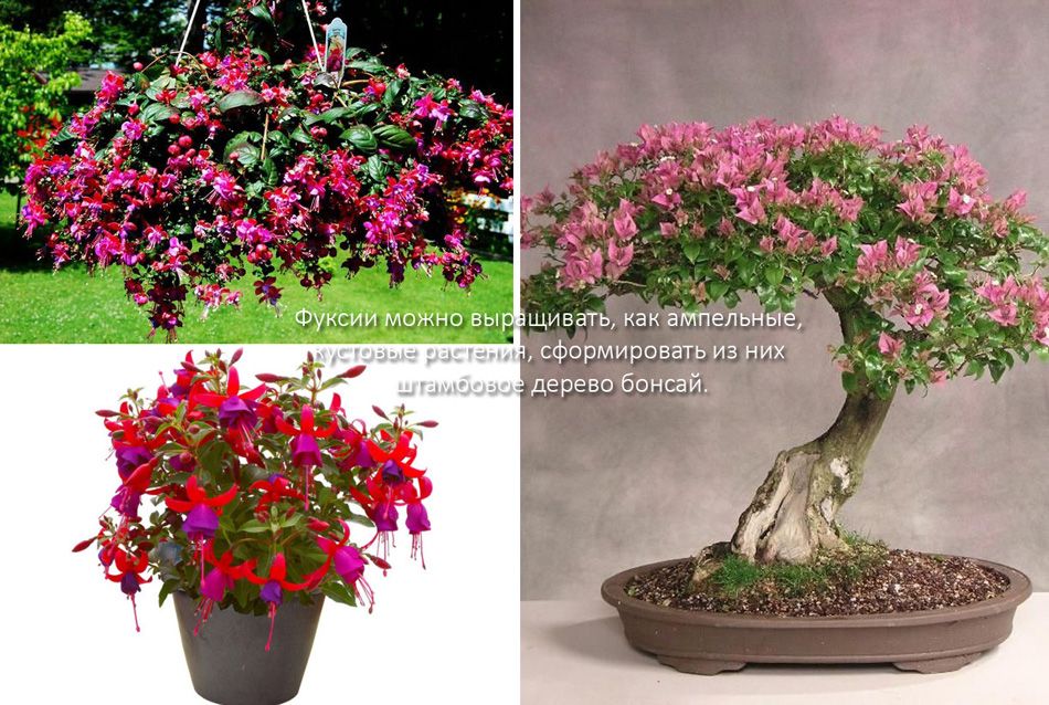 Фуксиите могат да се отглеждат като висящи или храстовидни растения и могат да се оформят в пирамидални или стандартни дървета.