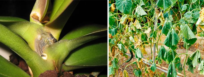 - имунитетът му първоначално е отслабен от неправилно поливане и хранене;