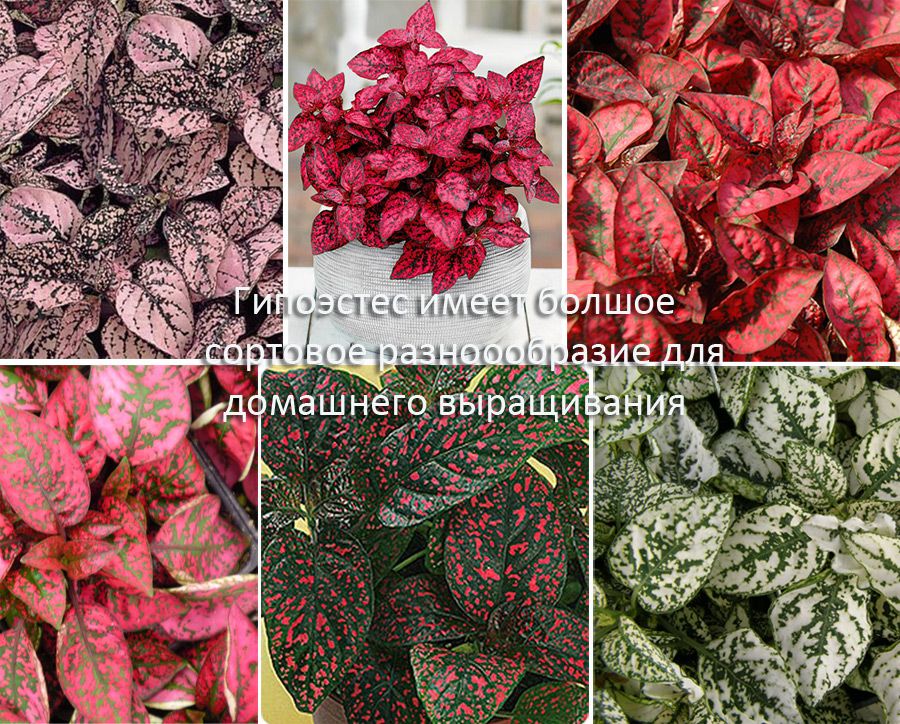 - Листо-колоско. На външен вид прилича на предишния вид Hypoestes, но листата тук са смесица от лилави нюанси. Цветовете са единични, лавандулови или бледо лилави.