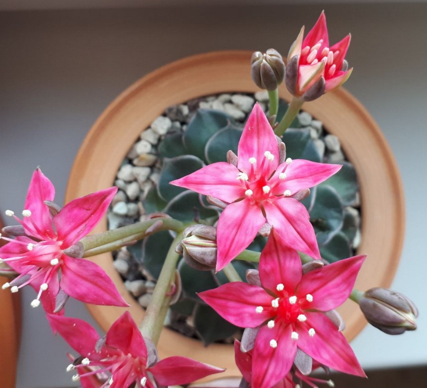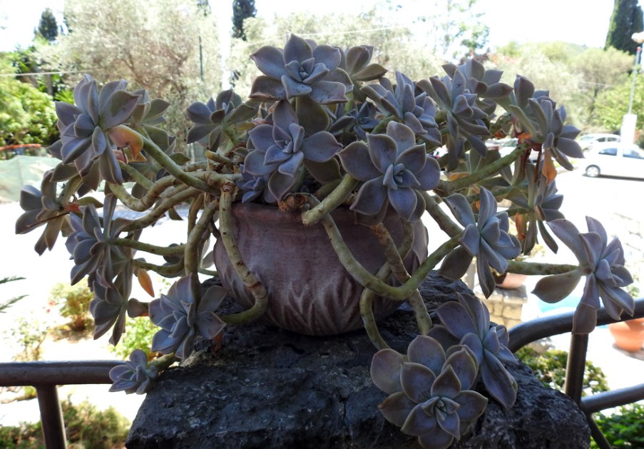 През юли 2017 г. донесох розетка от парагвайски граптопеталум от гръцкия остров Корфу, ваза от която стоеше близо до една таверна.