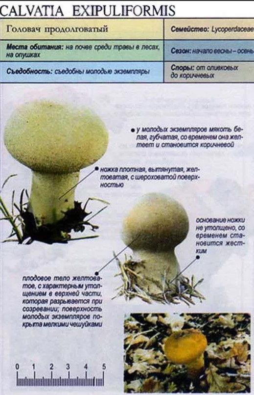 | Младите гъби са сферични, жълти на цвят, с бяла плът. С течение на времето те придобиват крушовидна форма, а плътта им става кафява. | юли-октомври | Широколистни гори с дъб и бреза. | Готвене в ранна възраст. |