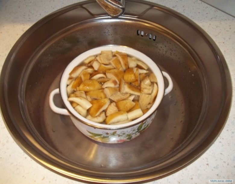 - гъбите се заливат със студена вода;