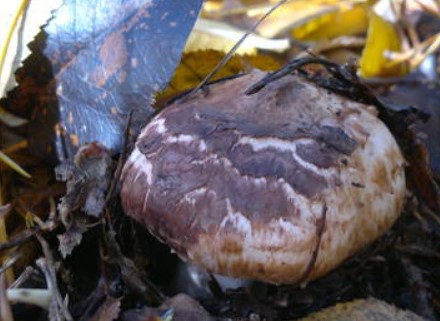Шапката е с диаметър 7-15 см и първоначално е яйцевидна, но с течение на времето се сплесква и придобива форма на чинийка с малка подутина в центъра. Цветът е розово-кафяв, с лек лилав оттенък. Кожицата е тънка, плътна и люспеста.