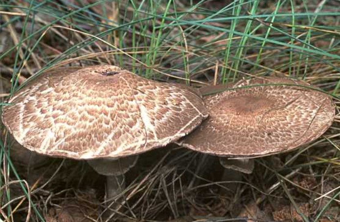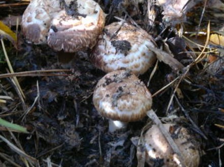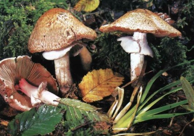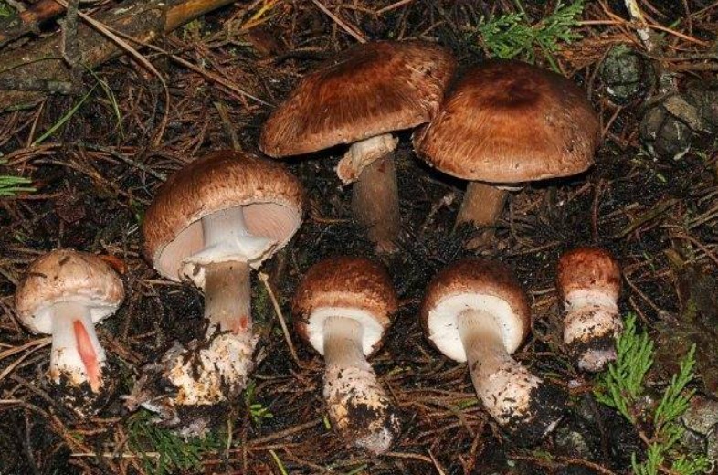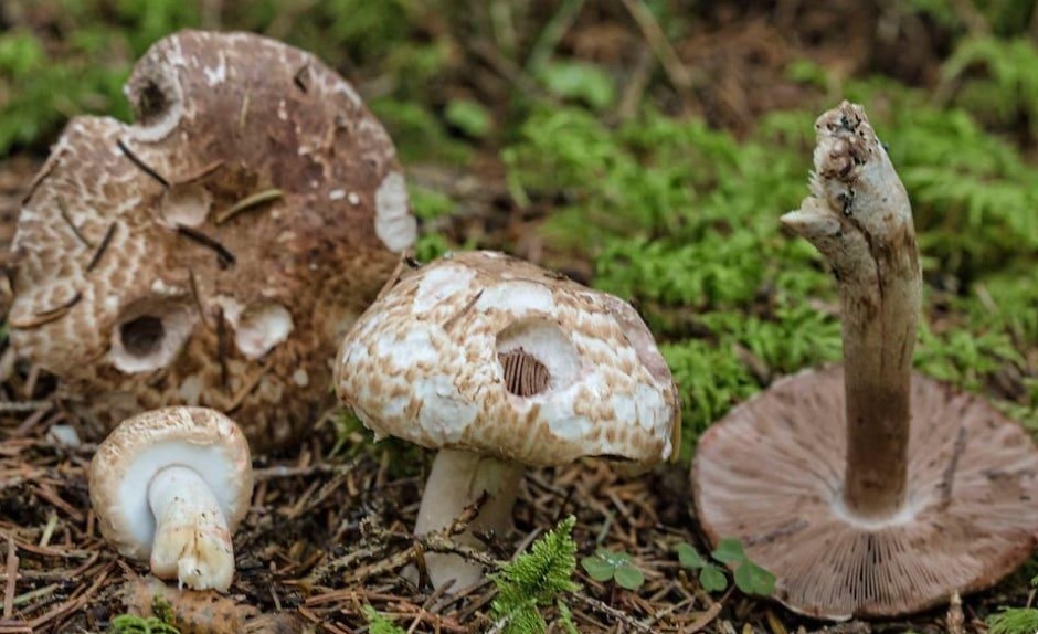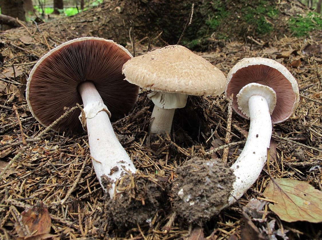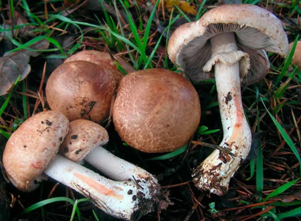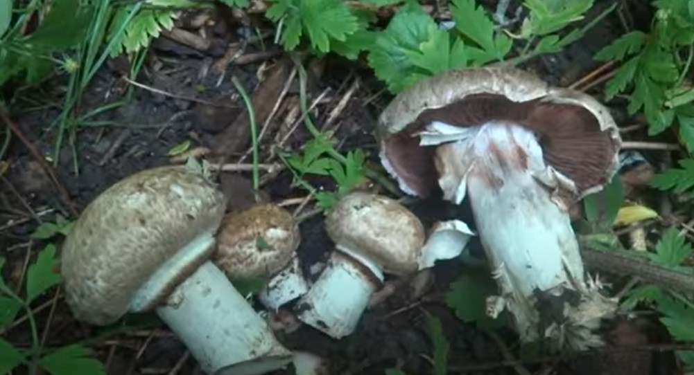 - Пъстра печурка. Стъблото е неравномерно, основата е подута, а цветът е светъл със сивкави петънца. Месото има остра миризма и пожълтява на местата, където е счупено.