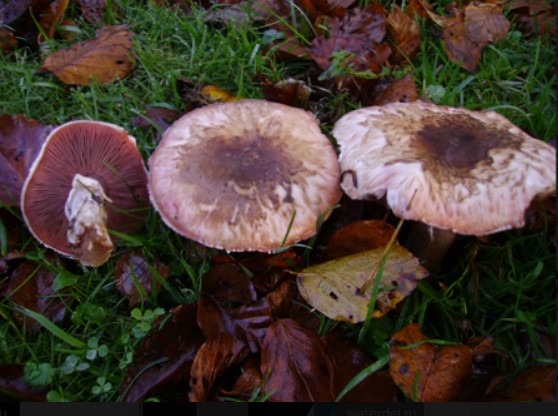 Хименофорът, разположен от долната страна на шапката, е съставен от светли хриле с розов оттенък. При зрелите гъби обаче той става лилаво-кафяв.