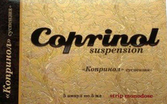 Един от тях е Копринол. Продава се под формата на суспензия и когато се консумира с алкохол, човек изпитва цял набор от негативни ефекти. Освен Копринол, се предлагат и други лекарства: Antabuse, Proproten 100, Vitael и Kolme.
