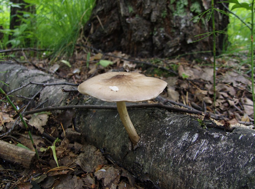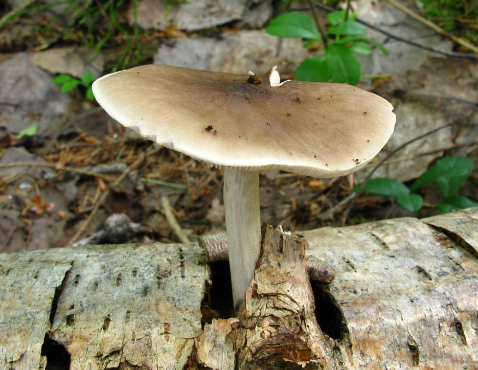 Има лъскава сива или дори кафява шапка, поради което се бърка само с белия сорт (албинос), достигайки 15 см и дори 24 см, стъблото е белезникаво - 5-15 см х 0,8-2 см. |