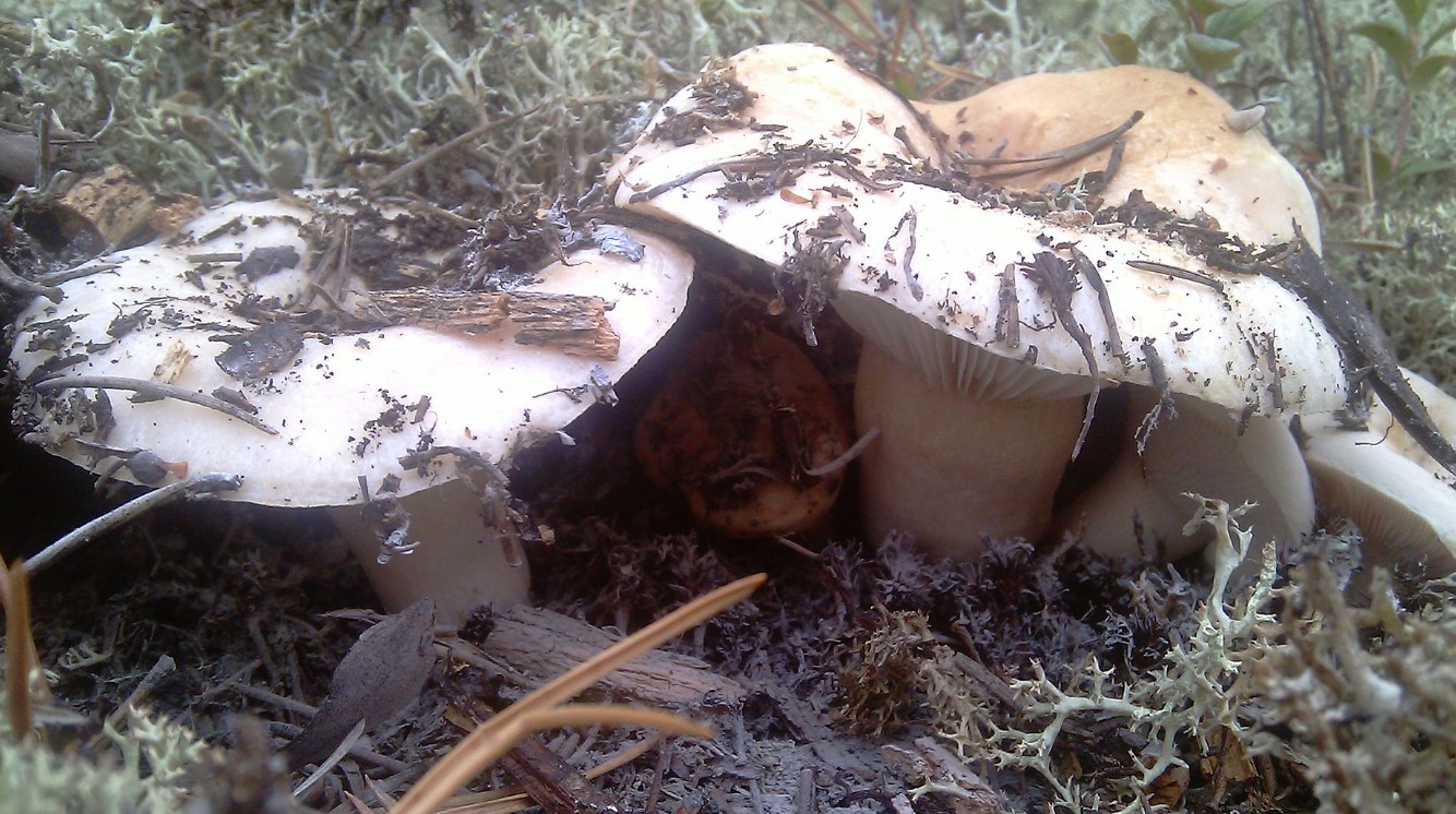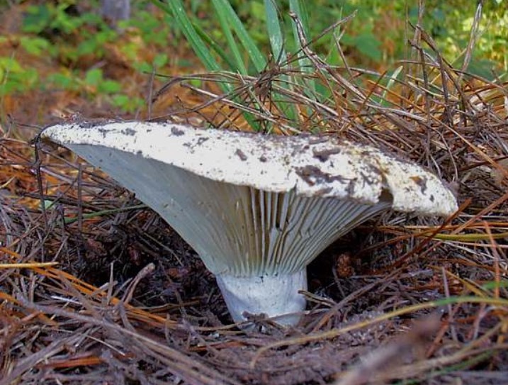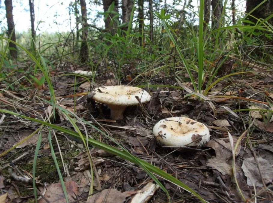 | Диаметърът на шапката варира от 7 до 30 см, бяла е на цвят, който с възрастта става жълтеникаво-кафяв. Дръжката е дълга от 3 до 8 см. | Ядливо, подходящо за мариноване. | Предпочита влажни гори на европейската част, растящи до иглолистни дървета. | Среща се в иглолистни гори, има много късо стъбло. |