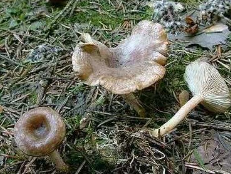 | Листолюбив говорливец, листен говорливец | Шапката е фуниевидна с обърнати ръбове, с диаметър от 2 до 11 см. Цветът е кремав или сивкав, с розово-кафяви петна по повърхността. Дръжката е висока до 7 см и с диаметър до 1,5 см. Месото има пикантен аромат. | Отровно. | Расте в много гъсти групи, предпочитайки гнили субстрати от иглички и листа в иглолистни и широколистни гори. |