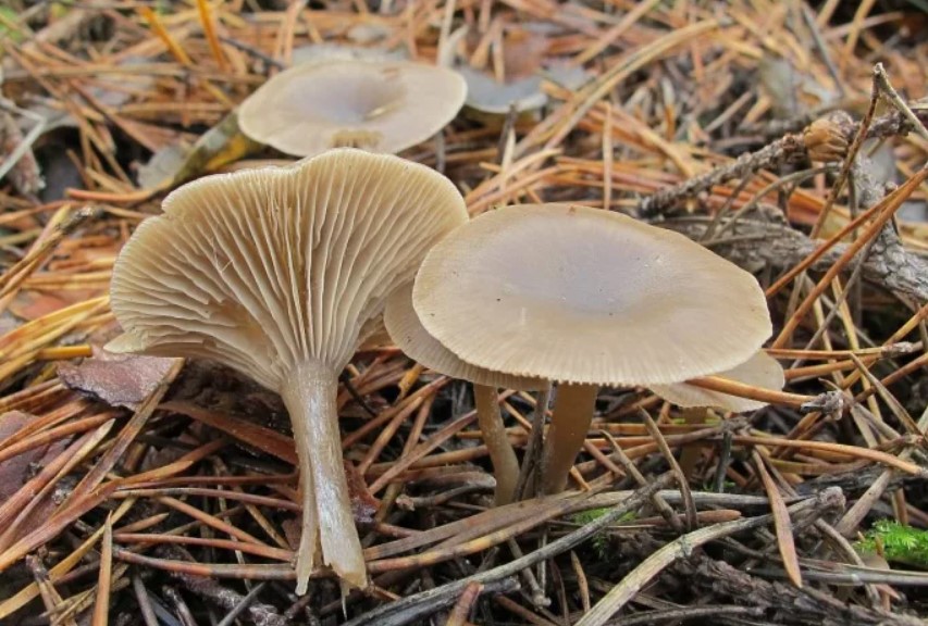 | Говорител с ниска миризма | Шапката е бежова или кафеникава на цвят, с диаметър до 6 см. Първоначално е изпъкнала, по-късно придобива фуниевидна форма. Дръжката е дълга около 6 см, цилиндрична, леко сплескана и малко по-светла на цвят от шапката. | Отровно. | Среща се през зимата в райони с умерен климат, като предпочита смесени и борови гори. |