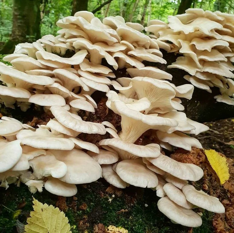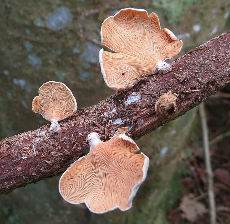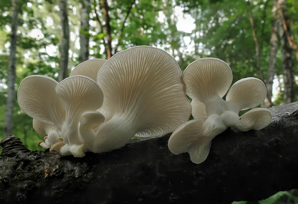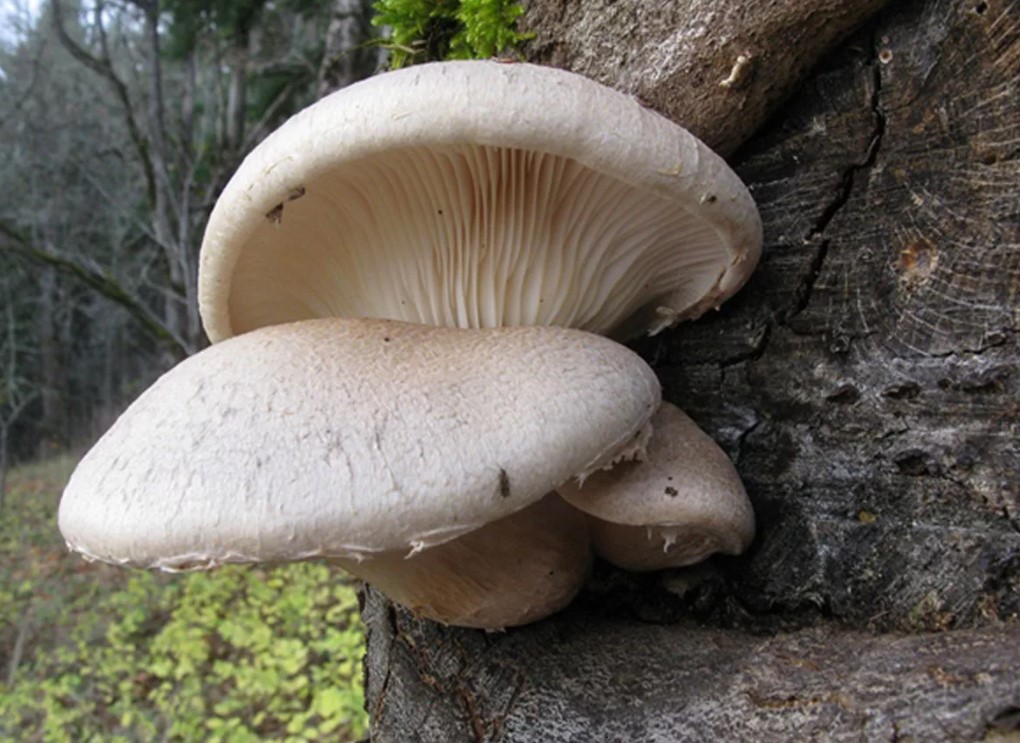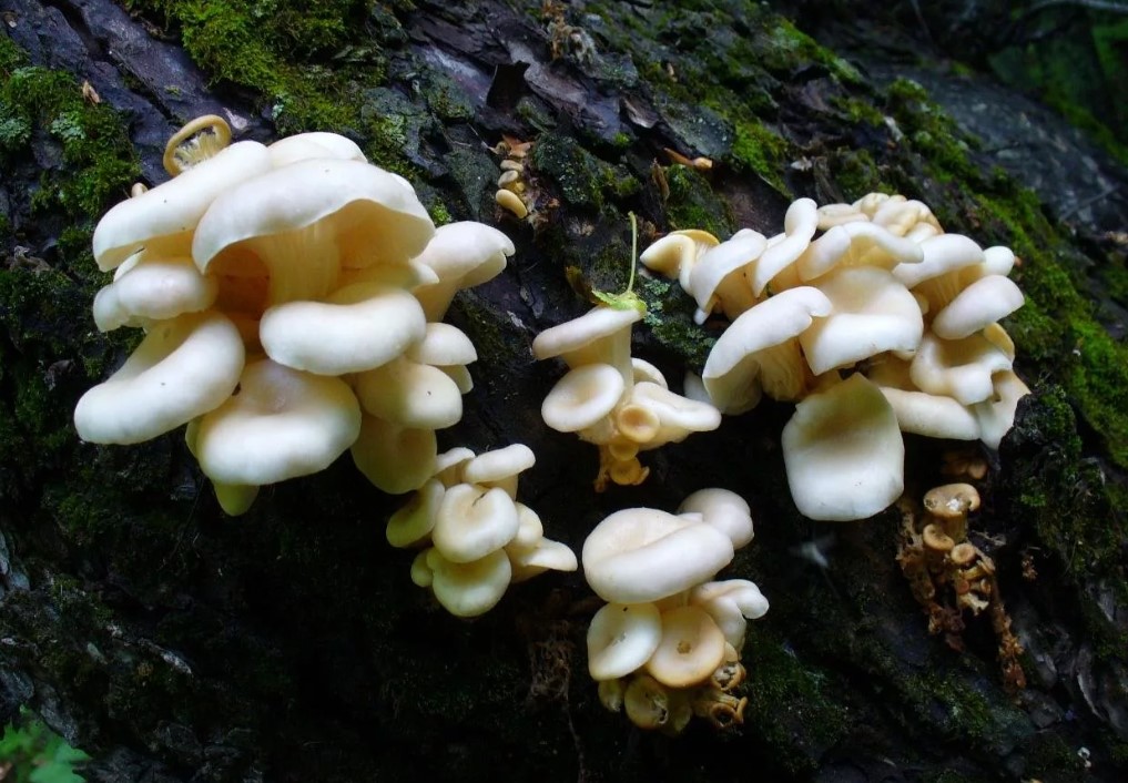 - Белодробен (Pleurotus pulmonarius)Шапката е с форма на език, бяла или кафеникава на цвят. Беритбата може да бъде от пролетта до първите слани. Само млади екземпляри са подходящи за консумация, тъй като с възрастта месото става жилаво и влакнесто.