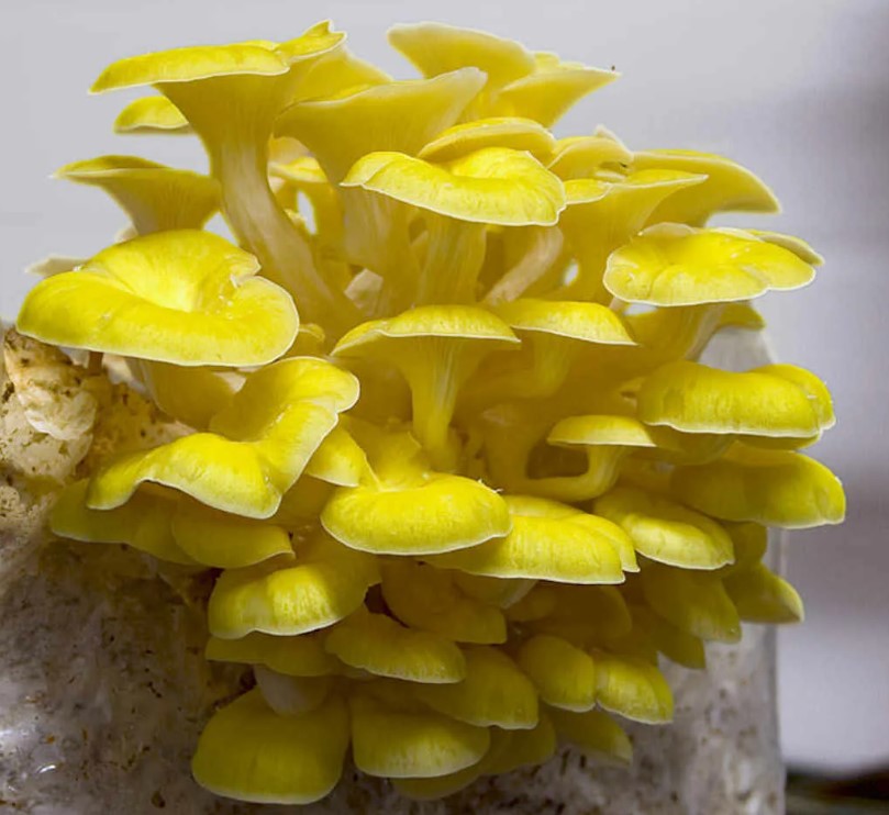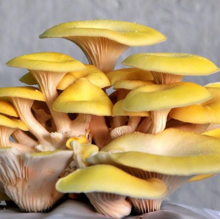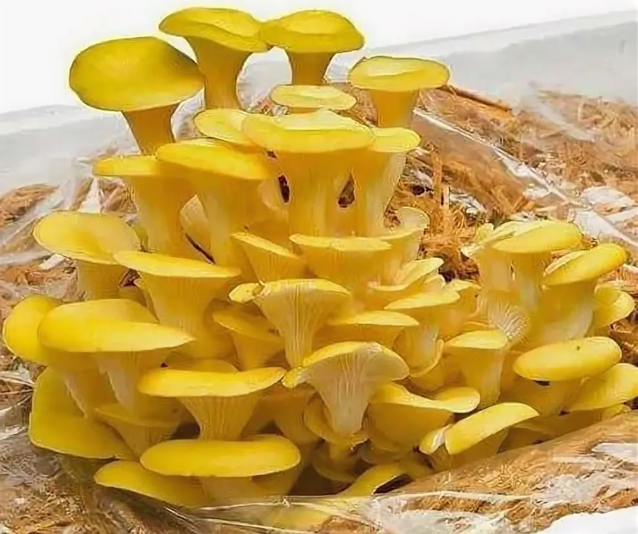 - Лимон (Pleurotus citrinopileatus)Друго име на тази гъба е бряст. Шапката е конусовидна и ярко жълта. Много лесна е за отглеждане, расте гъсто с удължени стъбла и диаметър на шапката от 5 до 10 см.