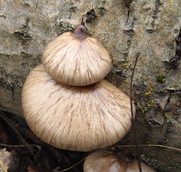 - Роговиден (Pleurotus cornucopiae)Отличава се с коничната си шапка. Предпочита да расте по пънове на бряст. Цветът може да бъде пясъчен или тъмнокафяв.