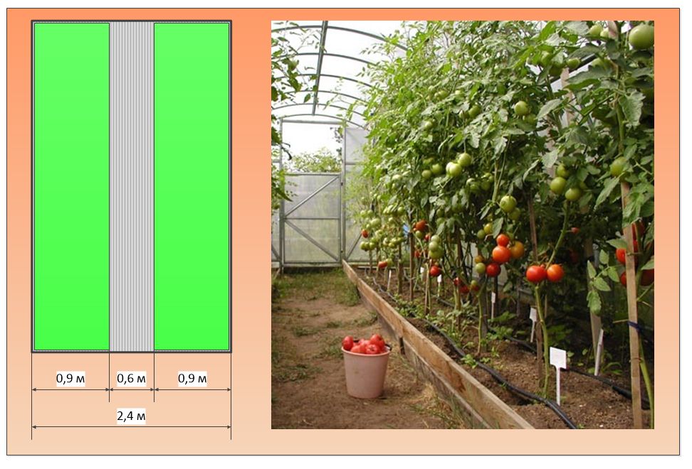 Разположението на леглата в оранжерия е 2,4 на 4 м