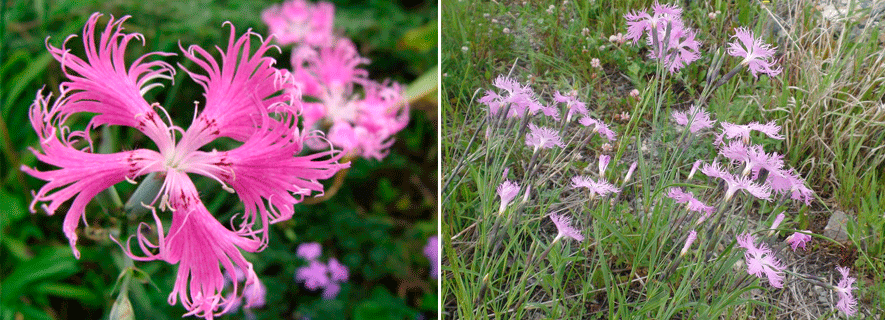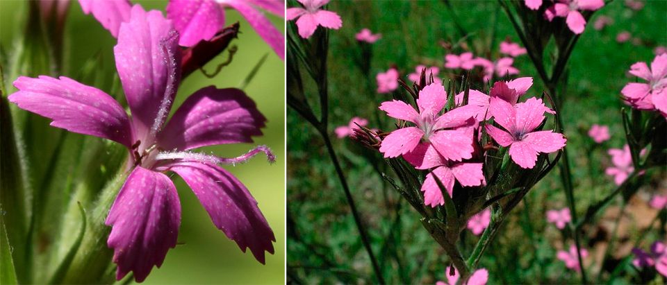 Стъблото носи един цвят, състоящ се от пет венчелистчета. Листната част на венчелистчето е хоризонтална, назъбена или с реснист външен ръб. Има обаче сортове, които нарушават тези правила. Например, те имат няколко цвята, събрани в съцветия. Цветът варира, от червен до лавандулов. Някои сортове могат да имат необичайни нюанси, като оранжево, зелено и лилаво.