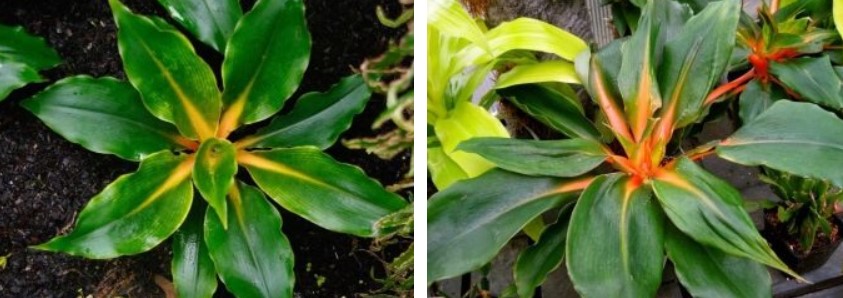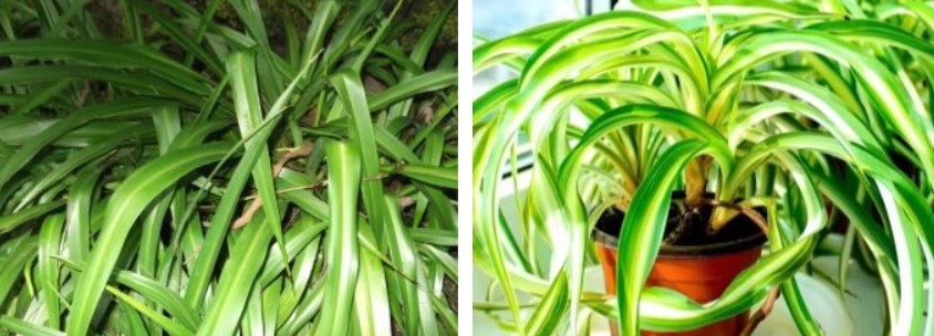 Външен вид:Дълги, тесни листа излизат от центъра на растението. Листата обикновено са зелени, но могат да имат бяла ивица по ръба или центъра. Това, което прави това растение особено привлекателно, са дългите цветни стъбла с цветове, събрани в съцветия, които по-късно се развиват в розетки.