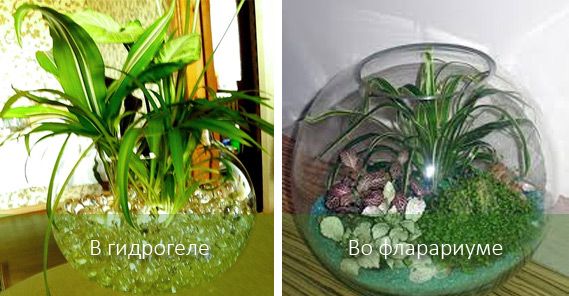 При този метод на поддръжка е необходимо редовно да се проветрява терариумът, в противен случай хлорофитумът може да умре.