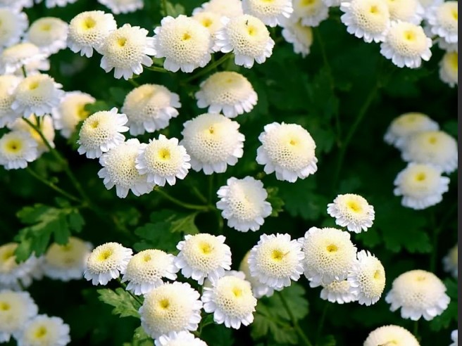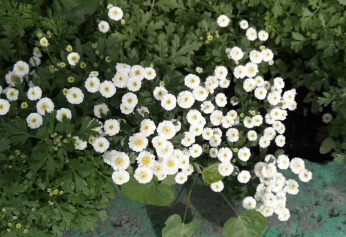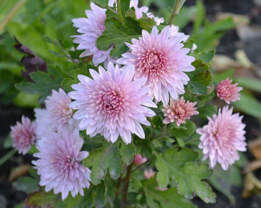 Хризантемите обикновено са лесни за грижи. Дори когато не цъфтят през лятото, те образуват буйна зеленина с нежни, красиви листа по краищата.