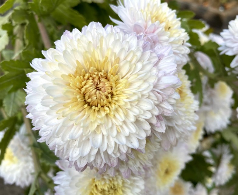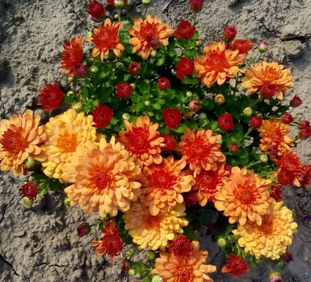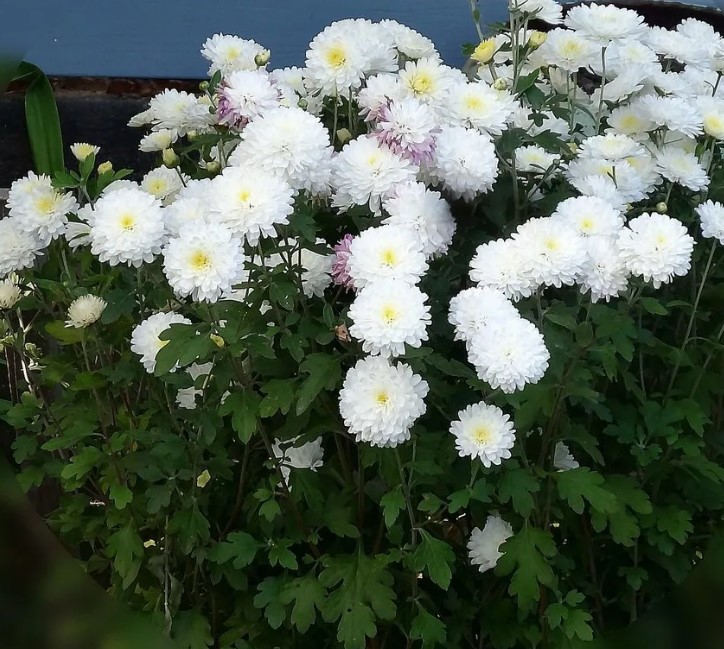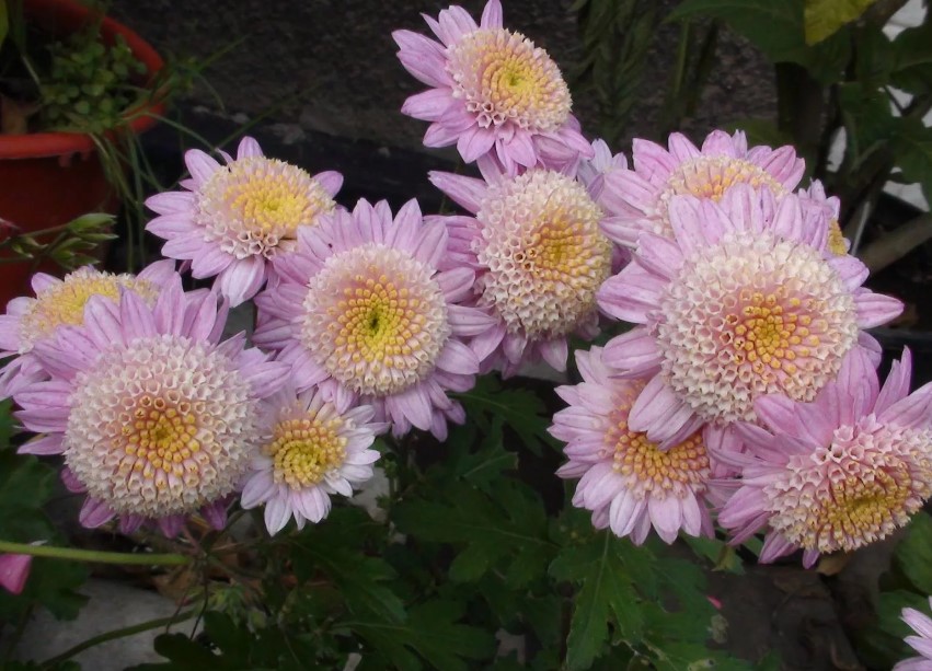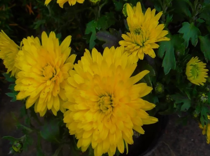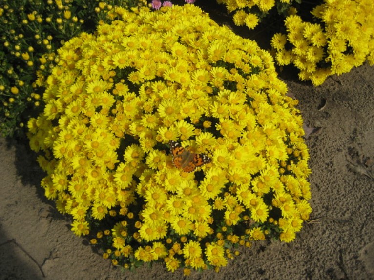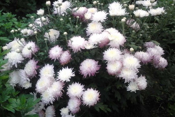 Като стана дума за почва, имаме прилична почва в нашата вила, но близо до къщата е глина и пръст. Дори в такава бедна почва хризантемите виреят и растат, цъфтят и се развиват доста добре.Хризантемите се предлагат в много разновидности и цветове. Имаме най-различни цветове, но всички са с еднакъв размер, като бялата е по-голяма. Някои цъфтят на съцветия едновременно, докато други цъфтят поотделно.