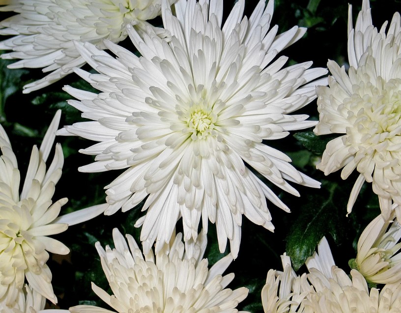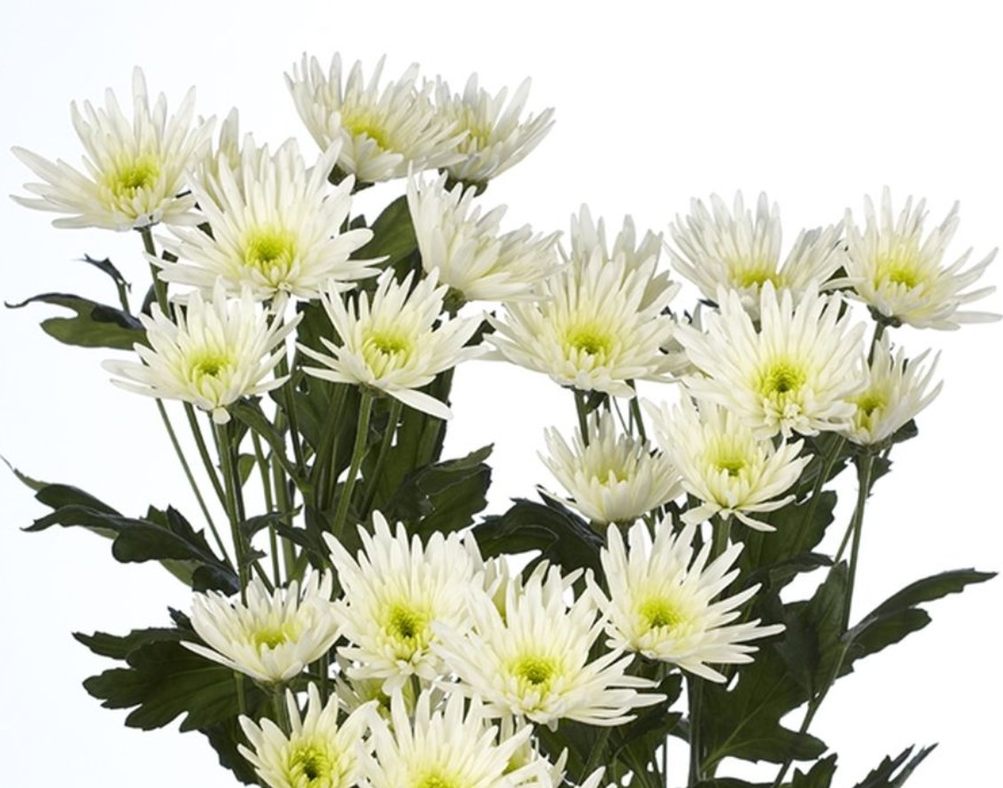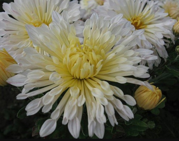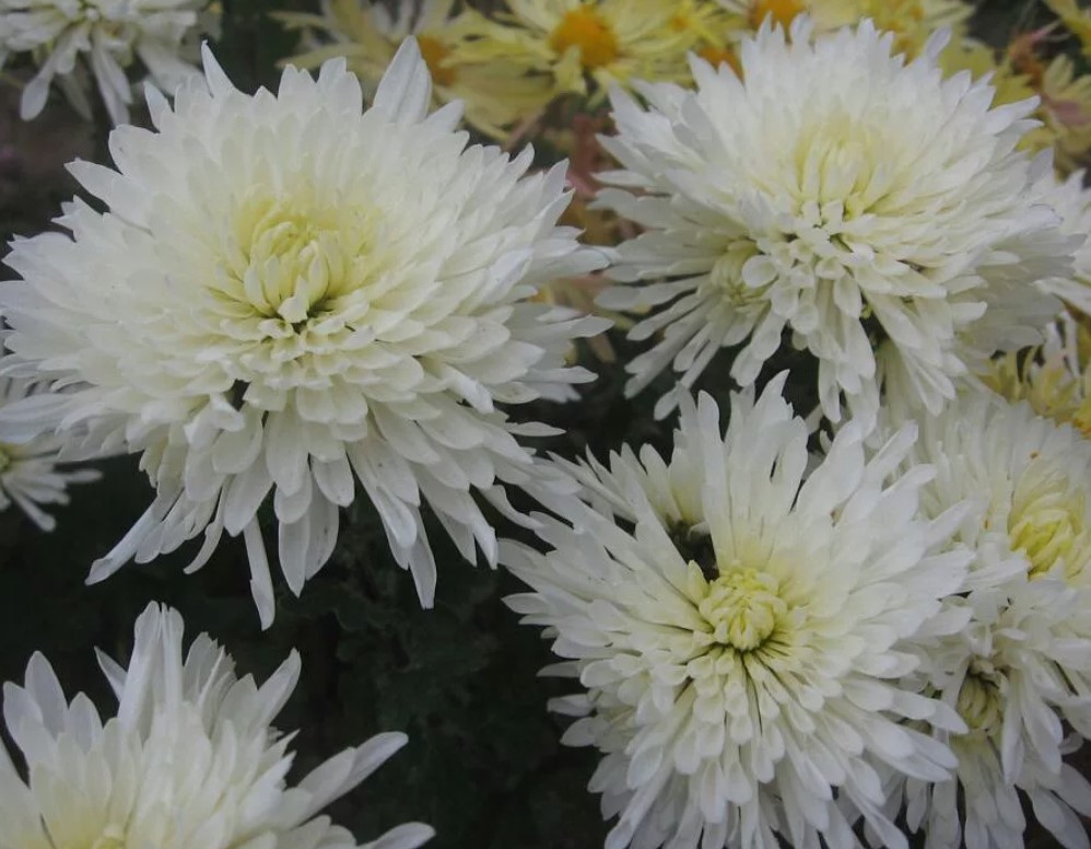 Цветни кошници с дълги, стеснени венчелистчета, които винаги гледат вертикално нагоре. | 160 мм, бели с жълта сърцевина, полудвойни игловидни. | Септември. | До -34°C. |