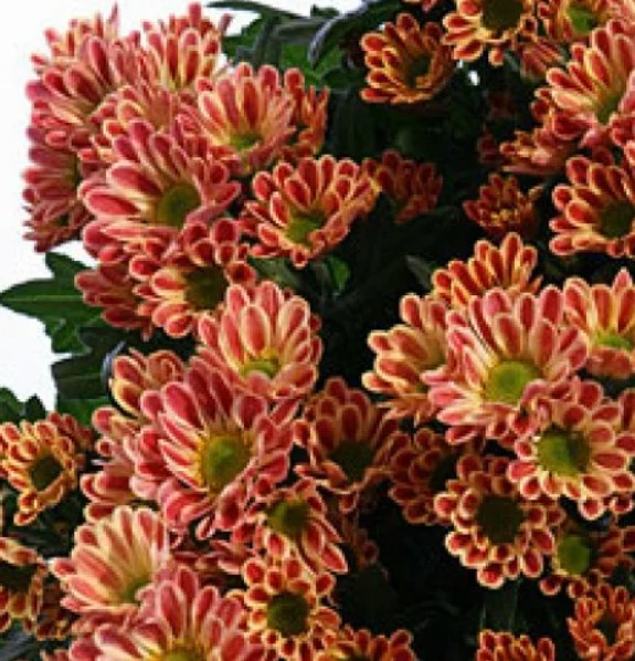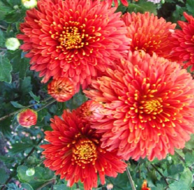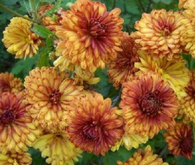 Разновидност на хризантема с форма на маргаритка. Височина до 60 см. | 50-60 мм, червеникаво-жълти, двойни. | |