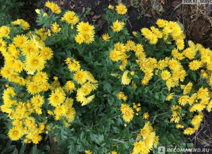Този сорт хризантема с дребни цветове е разработен сравнително наскоро и е резултат от екстензивна селекция. Образува полусферични храсти, които не изискват резитба. През първия сезон след засаждането расте до 35-40 см и започва да цъфти. | 30-40 мм, жълти, недвойни. | От средата на септември до първите слани. | Ниско. |