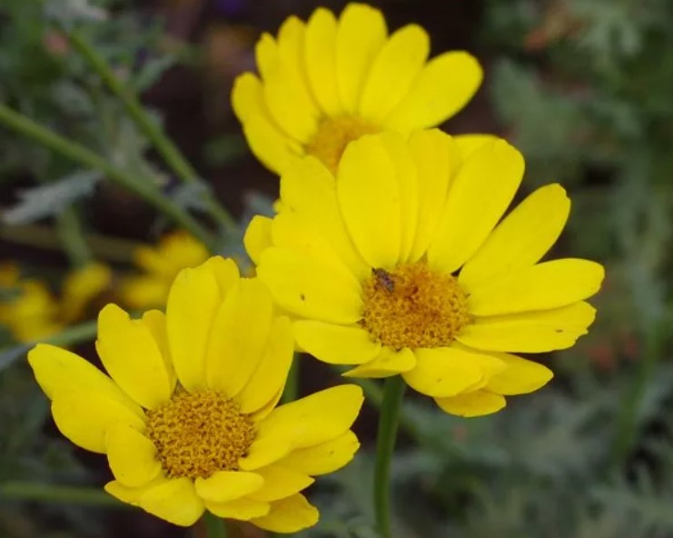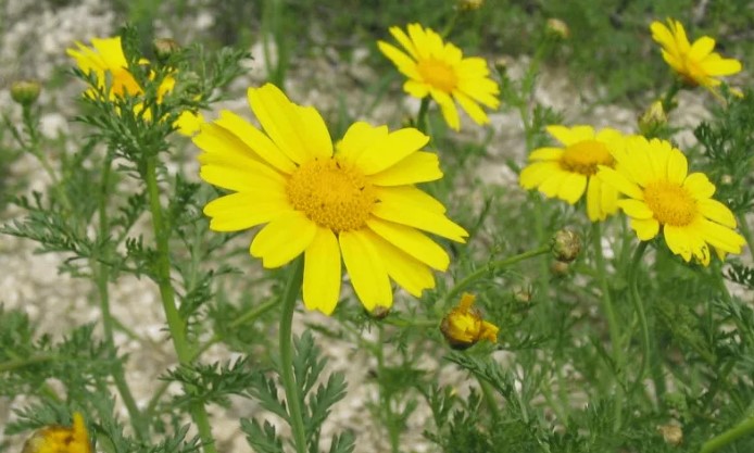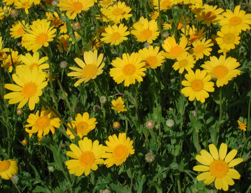 Стъблата са изправени и добре разклонени. Листата са продълговати и дълбоко разчленени по краищата. | 30-50 мм, златистожълти с тъмножълт център, единични. | |