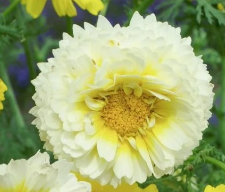 Многогодишно растение, което достига 40-50 см височина и ширина. | 100 мм, снежнобяло, светлокремаво или светложълто (в зависимост от климатичните условия), хавлиено. | От август до септември включително. | От -25°C до -30°C. |