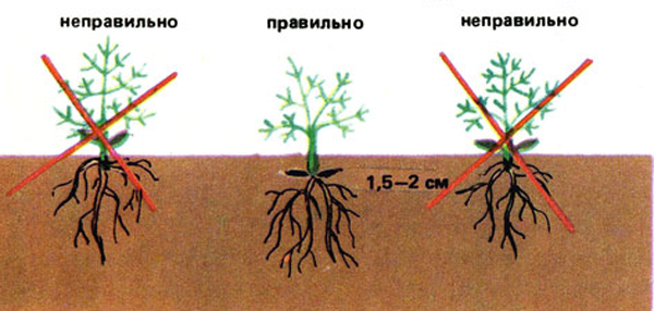 Разсадът трябва да бъде разположен на разстояние един от друг. Разстоянието се определя въз основа на сортовите характеристики.