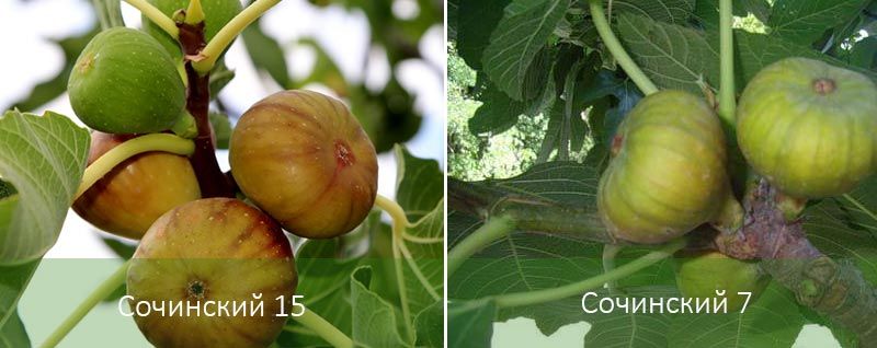 | Сочи 7, Сочи 8 | Това са селекционни сортове, разработени от учения Ю.С. Черненко на базата на белия адриатически сорт. Те са средно големи, с тегло 65-70 грама, с жълто-зелена кора и сочна червена плът. Узряват в края на лятото. |