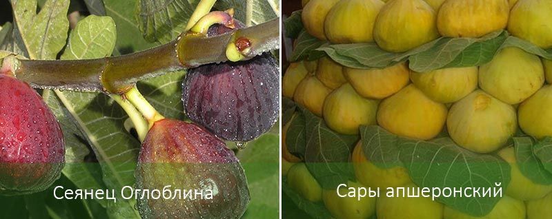 | Разсад от оглоблин | Селективен сорт, разработен от Н. А. Оглоблин. Плодовете завръзват през есента преди периода на покой. Зимуват като малки зелени плодове. До лятото набират размер и узряват по време на вегетационния период. |