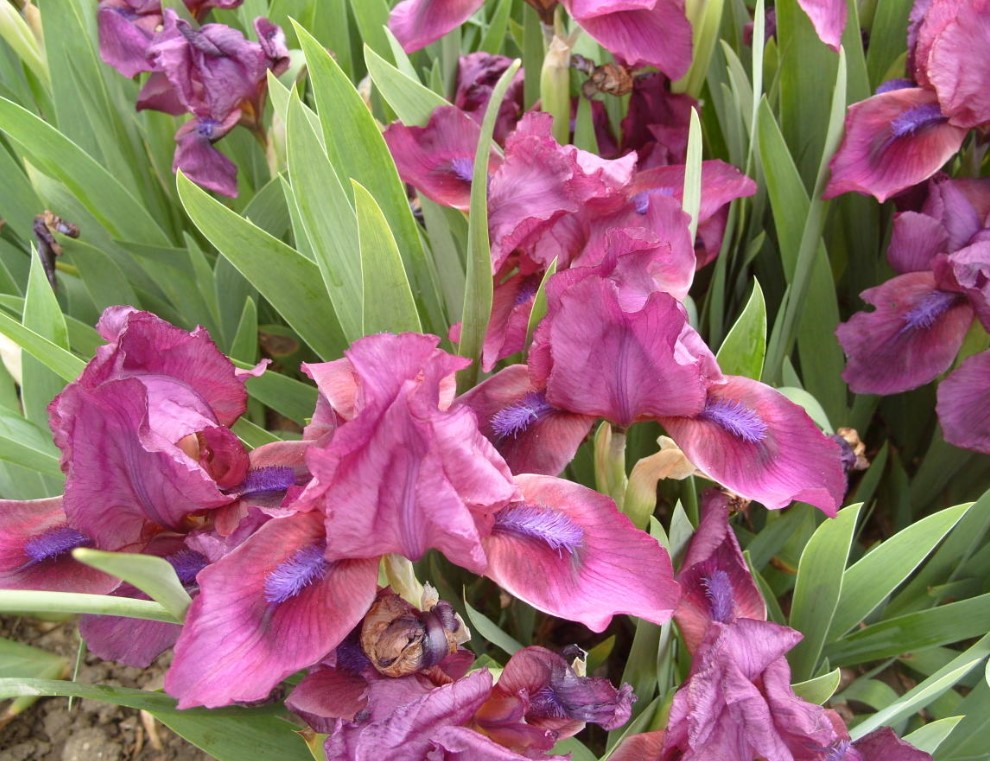 Този джуджест сорт, висок не повече от 30 см, се нарича „Врубел“. Характеризира се с големи, лилаво-червени цветове с лилава брада, с диаметър 12 см и височина 7 см.