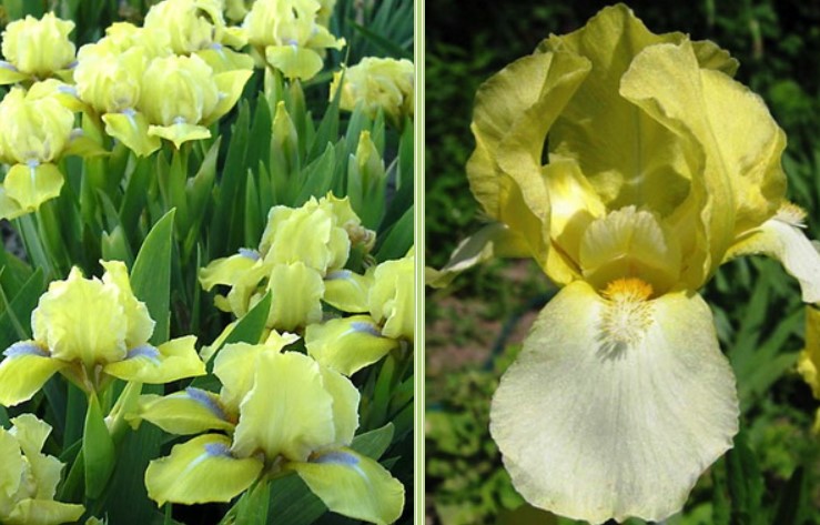 Джуджевите сортове, достигащи 25-35 сантиметра, се наричат джуджеви и цъфтят първи (Щегол, Карати, Шантед, Демон). Джуджеви брадати цветя: цветовата гама на пъпките им варира в зависимост от сорта и може да бъде бордо, светлосиньо, синьо, лилаво, жълто и други нюанси. Те ще украсят райони в цялата страна и са способни да виреят във всякаква среда.