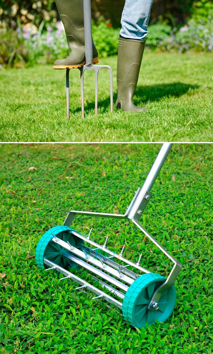 Вместо да се копае, тревата се аерира – почвата се пробива на дълбочина до 25 см.