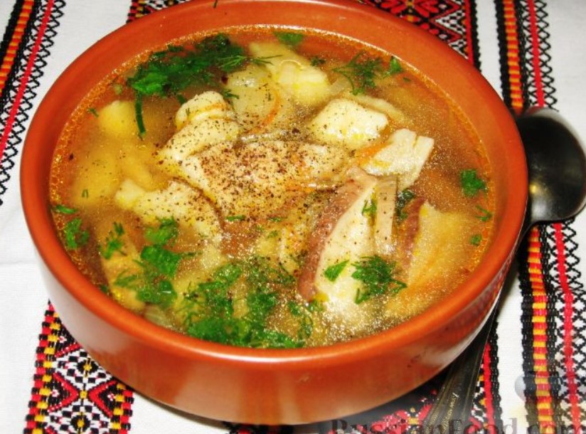 Супата от кнедли обикновено се приготвя от смес от сушени и пресни гъби.